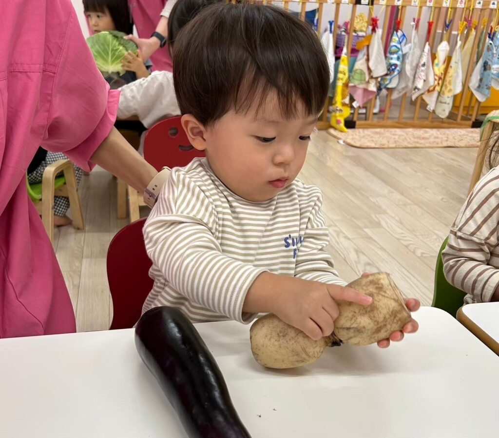 絵本をみて野菜に親しんだところで、本物の登場です♪
