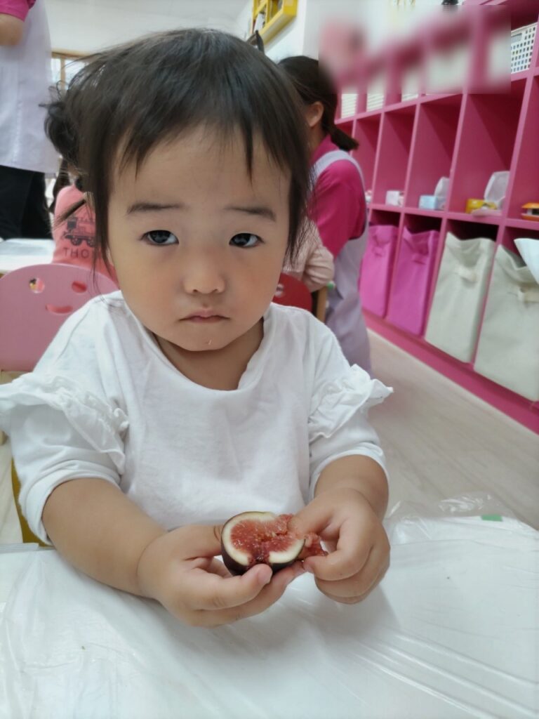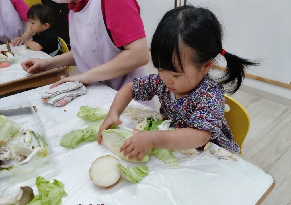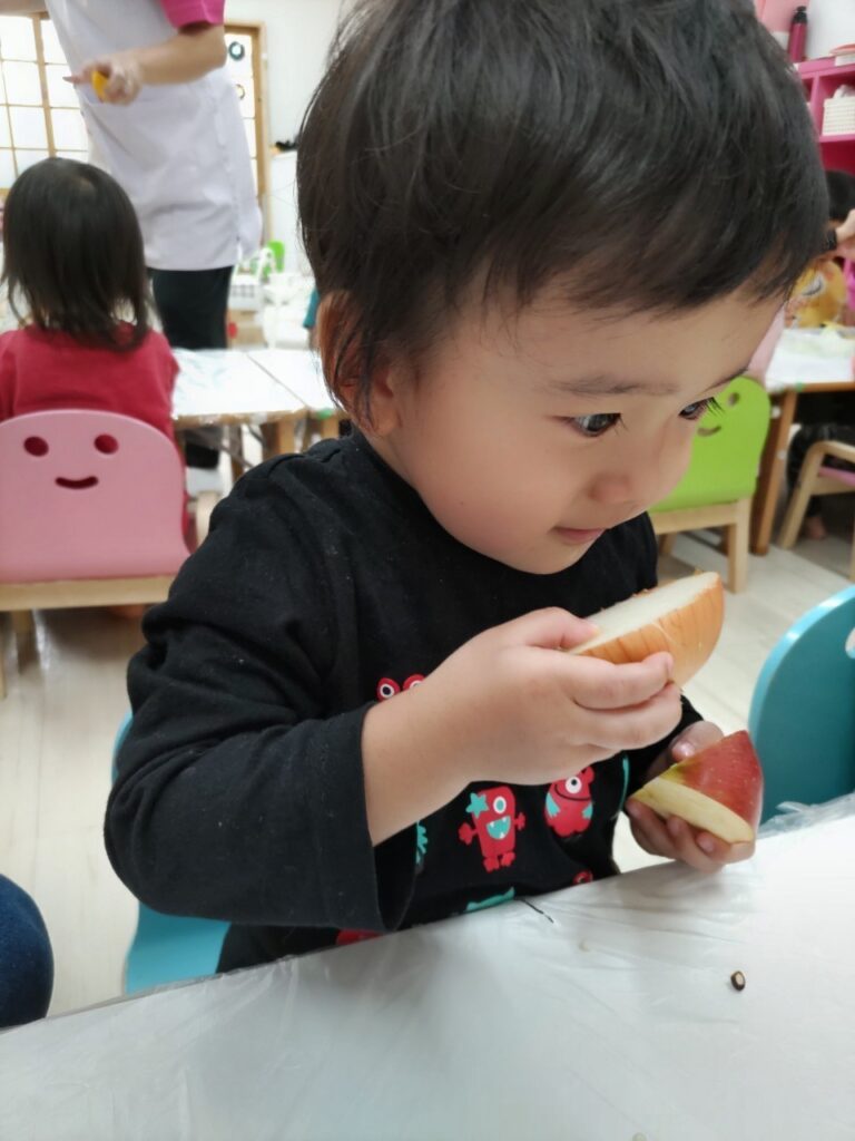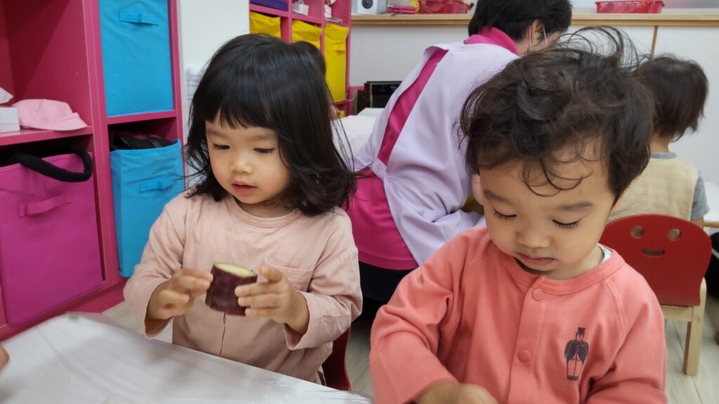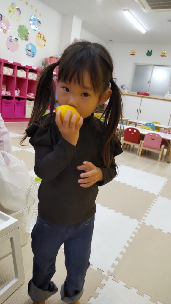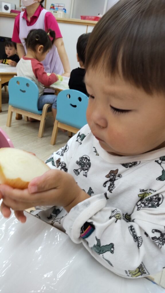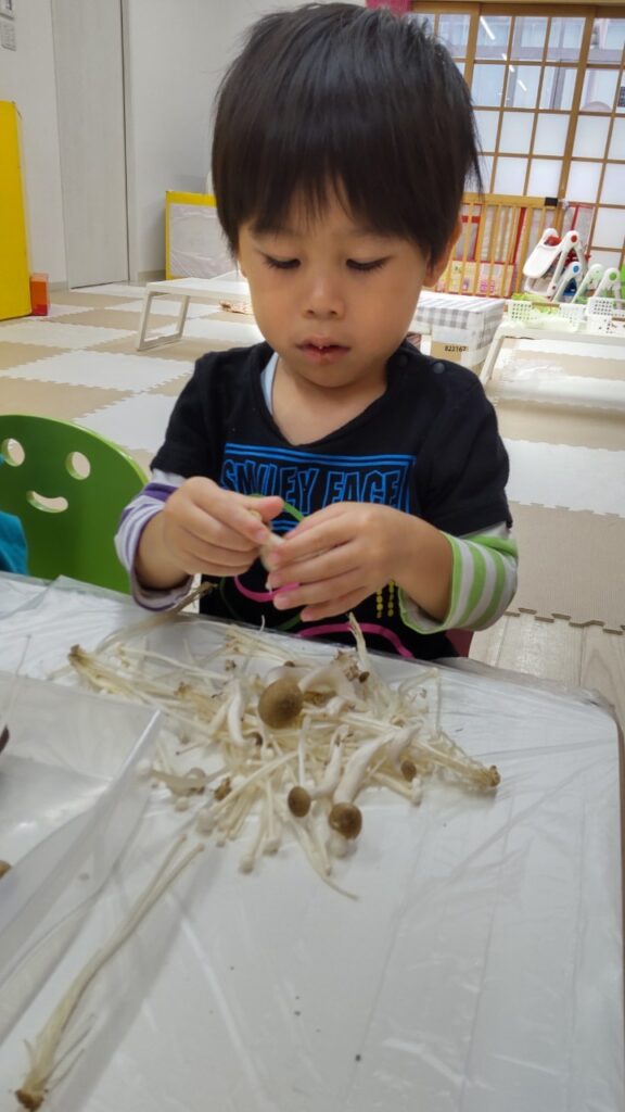 お友だちと順番にいろいろなお野菜に触れていきます^^