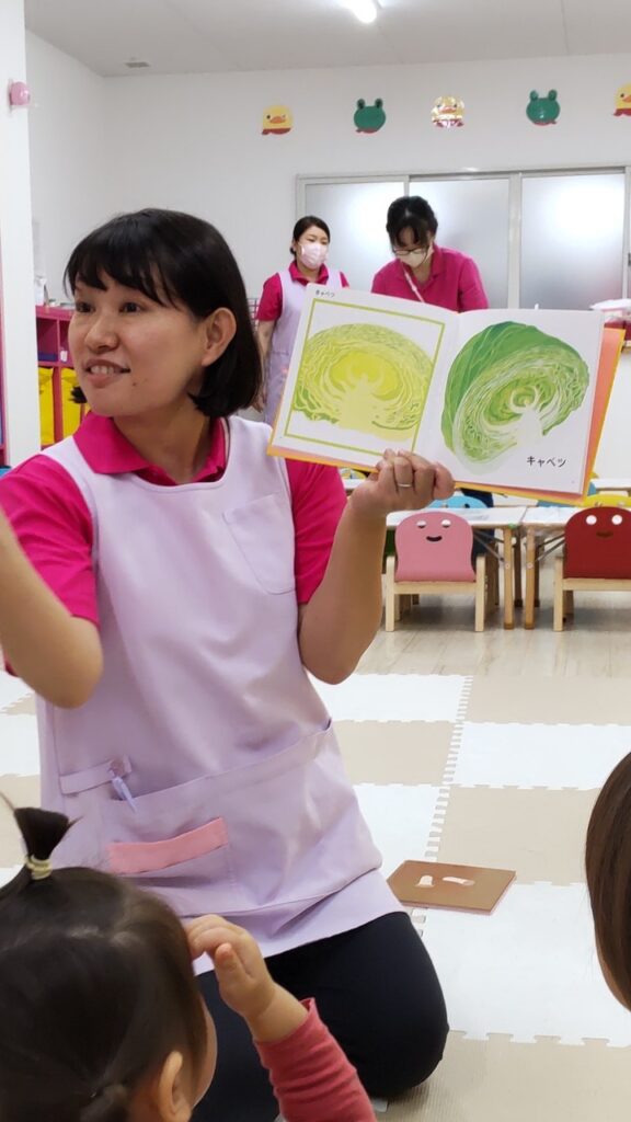 最初に野菜の絵本を見ます。