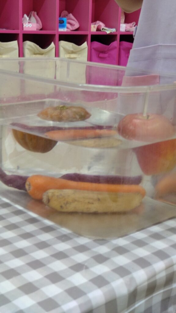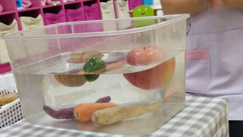 地面の下にある野菜は沈んで、地面より上にある野菜や果物は浮かぶそうですよ(^O^)/