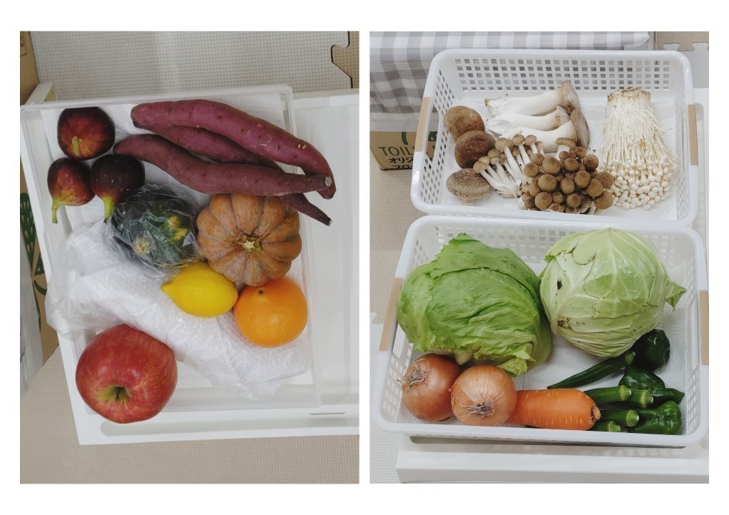 いろいろなお野菜や果物の名前を確認したところで、実物の登場!