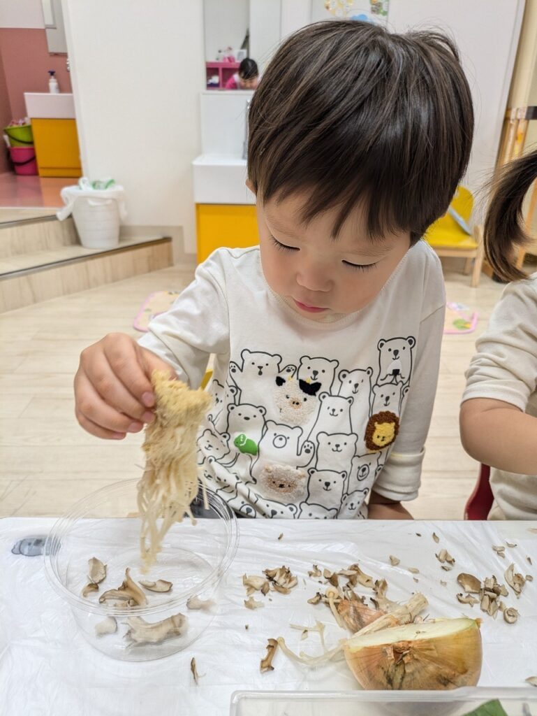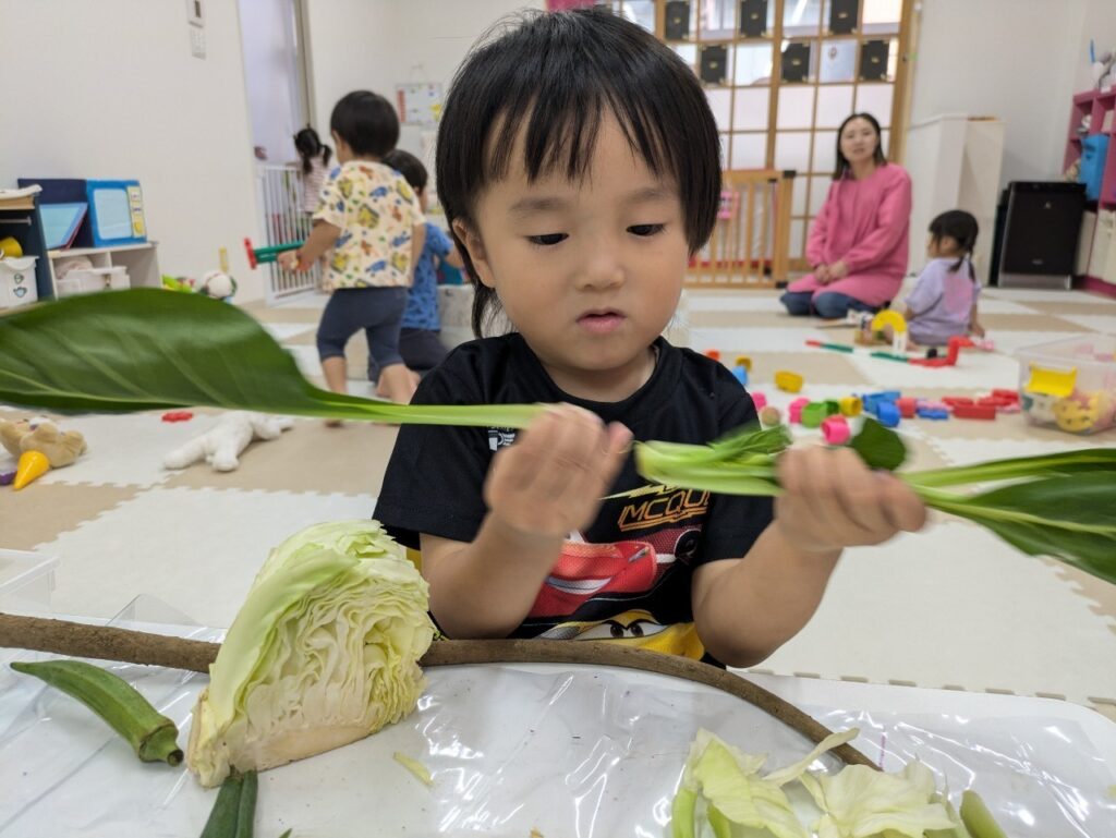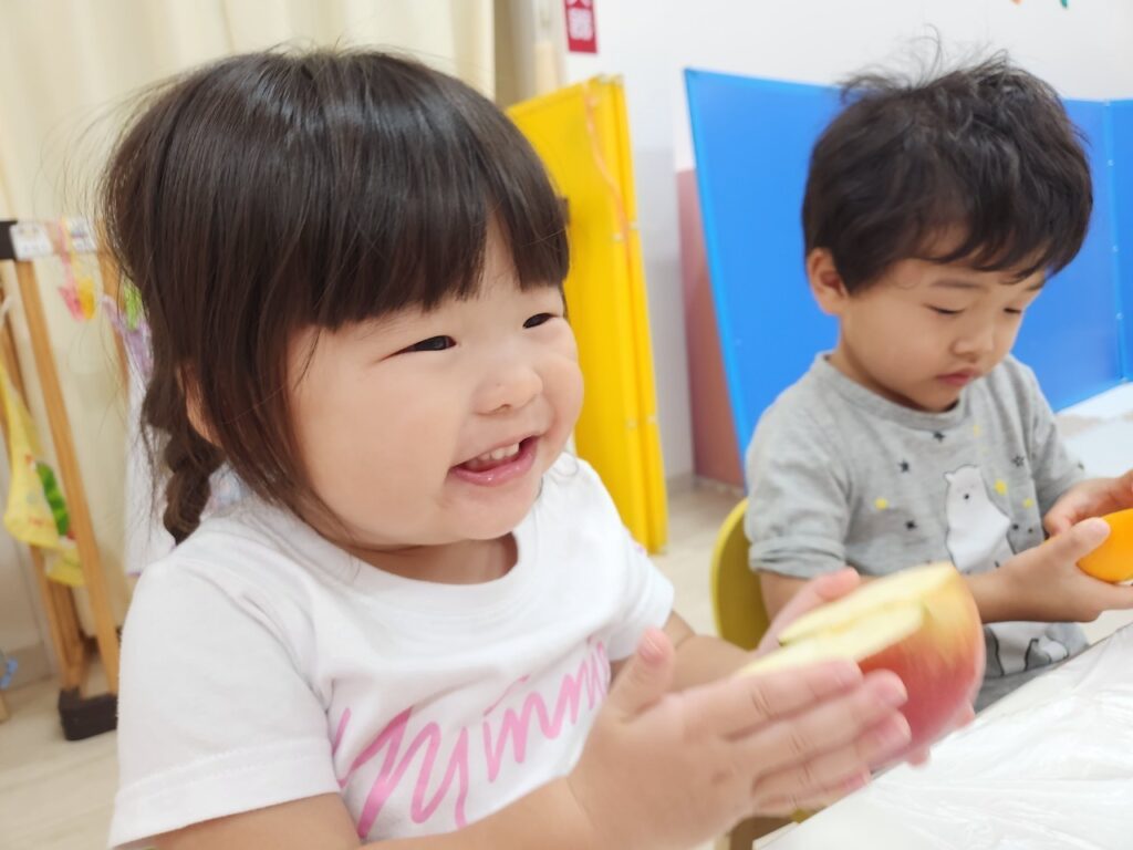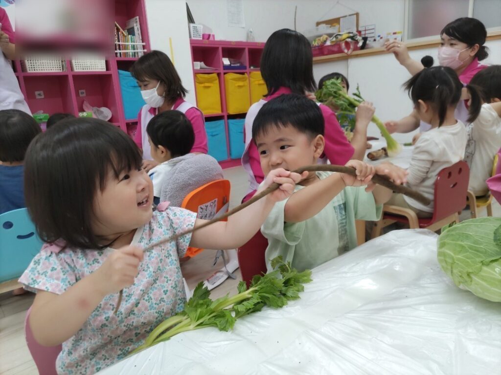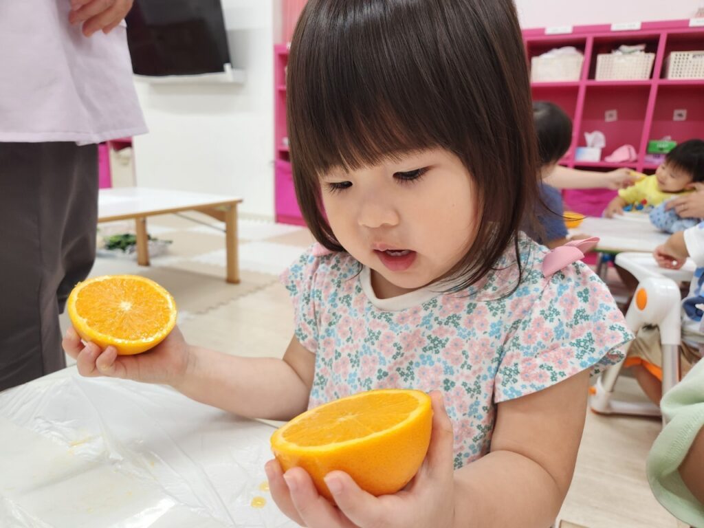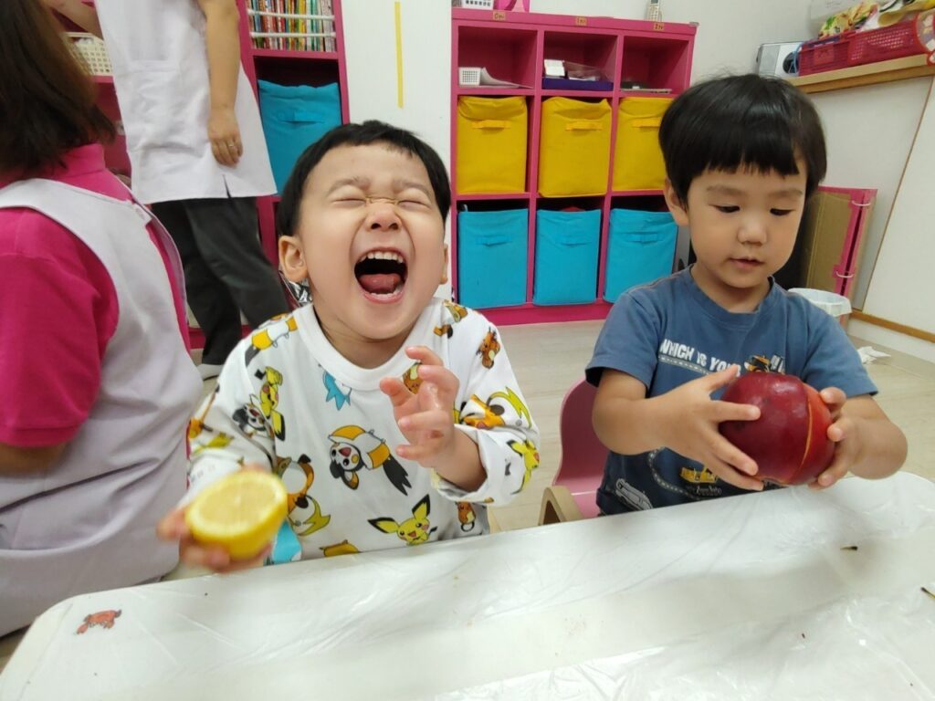 五感を使った遊びでなかなか意識するのが難しい「におい」ですが、身近な食材を使ってみんな興味津々にクンクンクン…楽しく取り組んでくれました♡