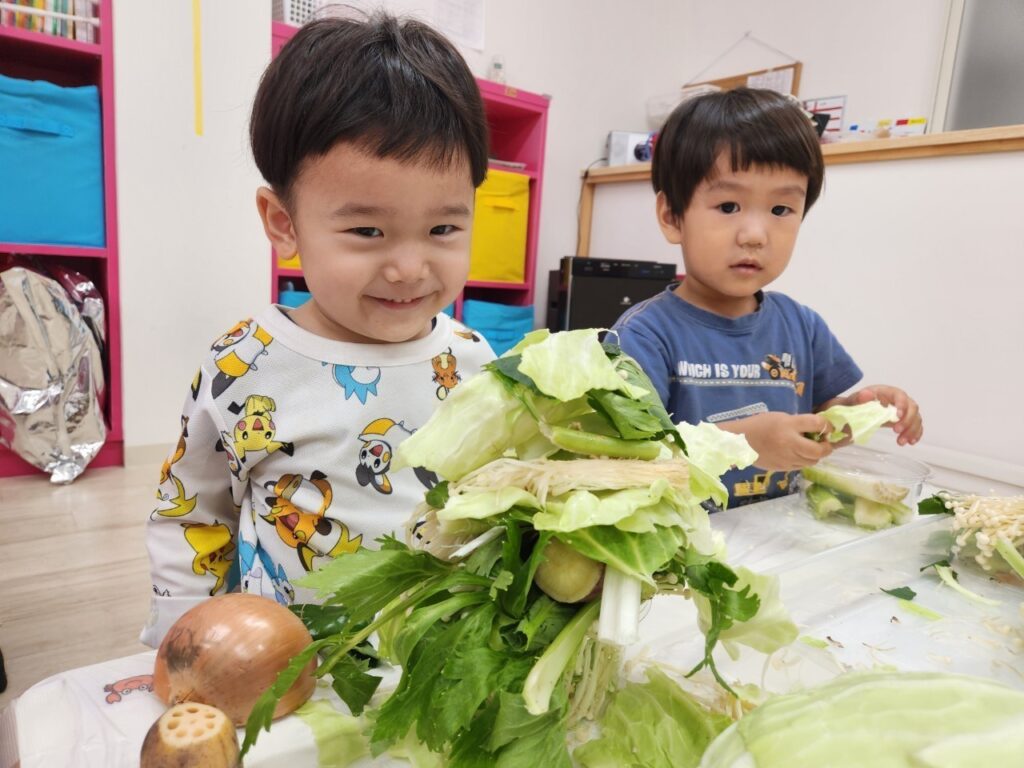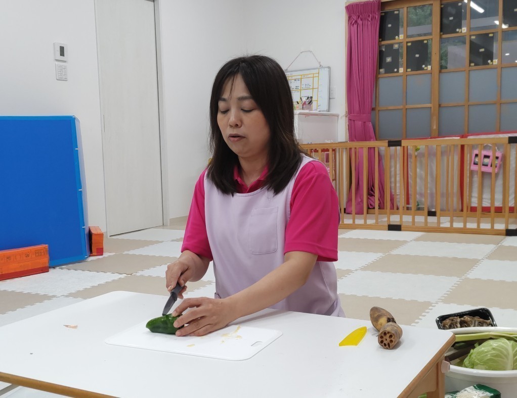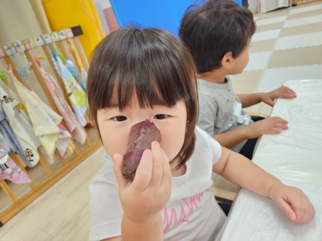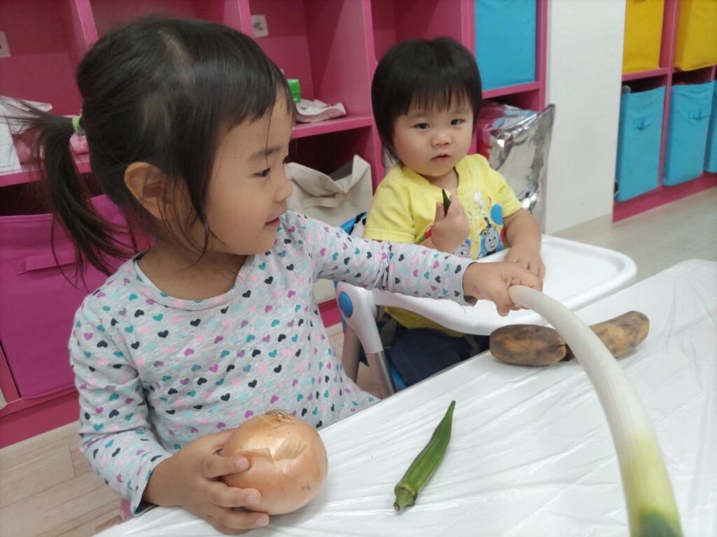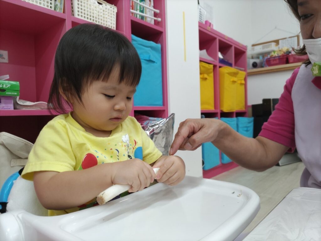 五感を使った遊びでなかなか意識するのが難しい「におい」ですが、身近な食材を使ってみんな興味津々にクンクンクン…楽しく取り組んでくれました♡