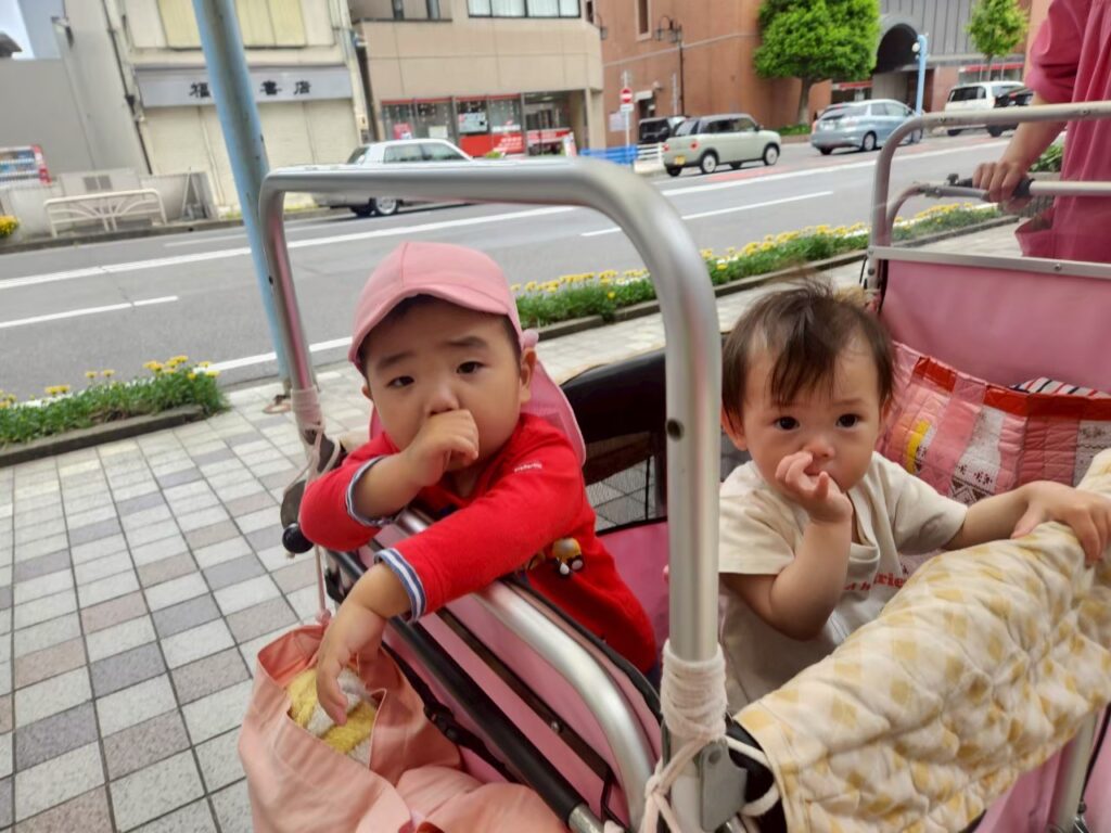 小さいお友だちはベビーカーや散歩車に揺られウトウトする子も…^^