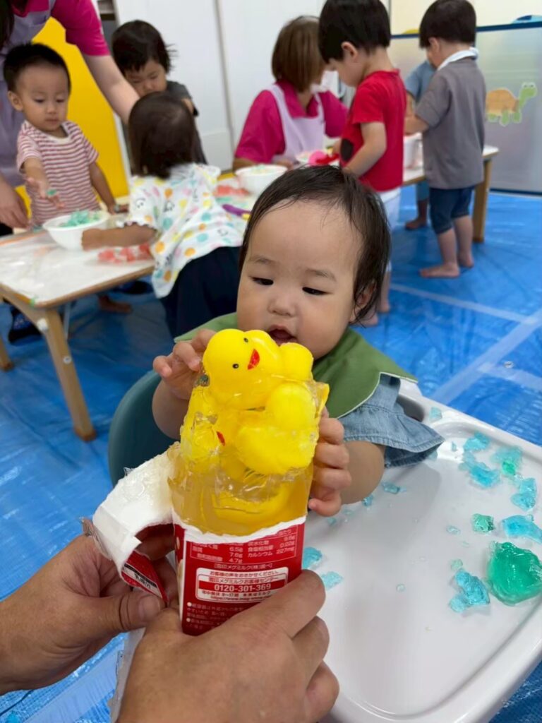 おててにゼリーがいっぱいくっついたよ\(^o^)/