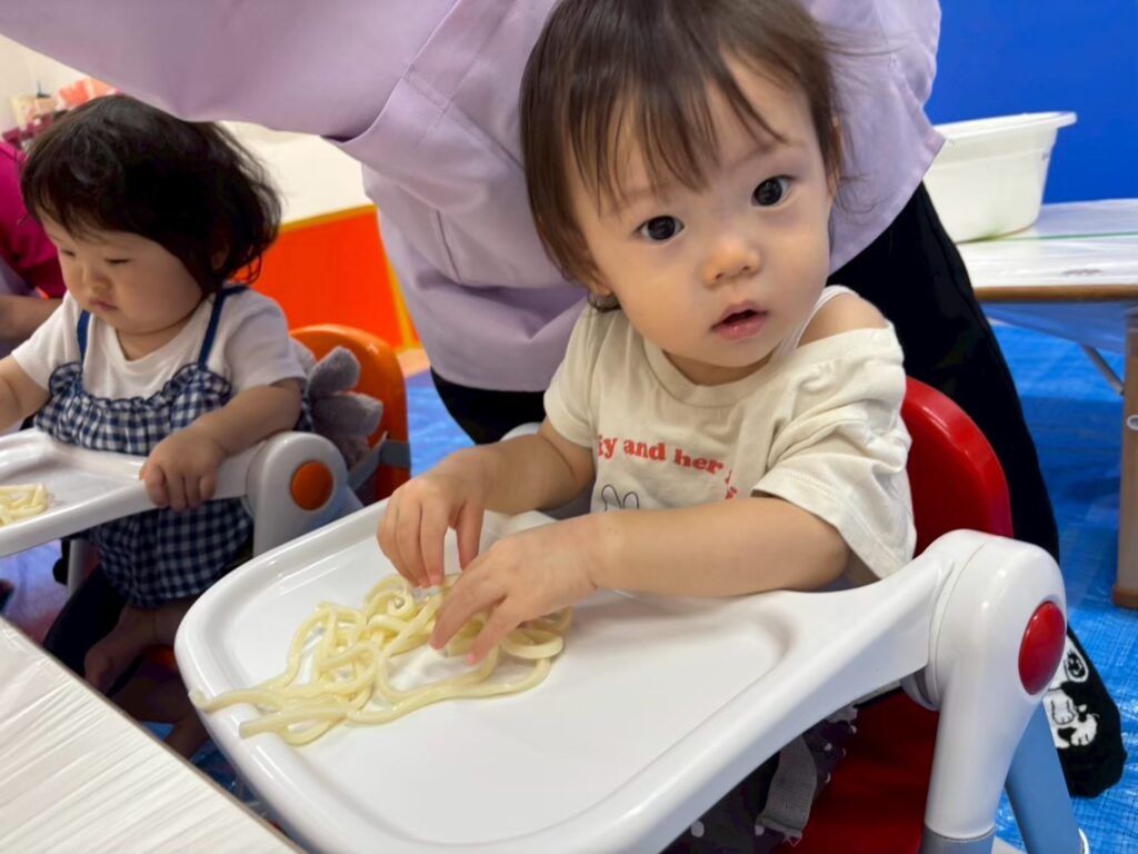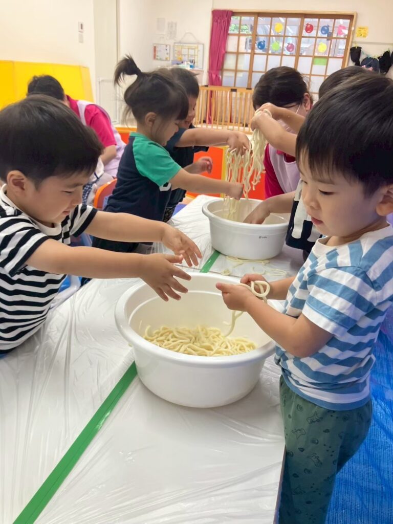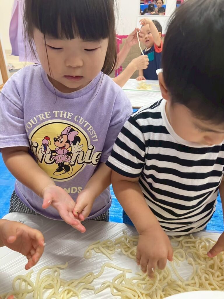 うどん・ゼリーの冷たさやモチモチプルプルな感覚を、目で見て、手で触ってしっかりと感じることができました☆