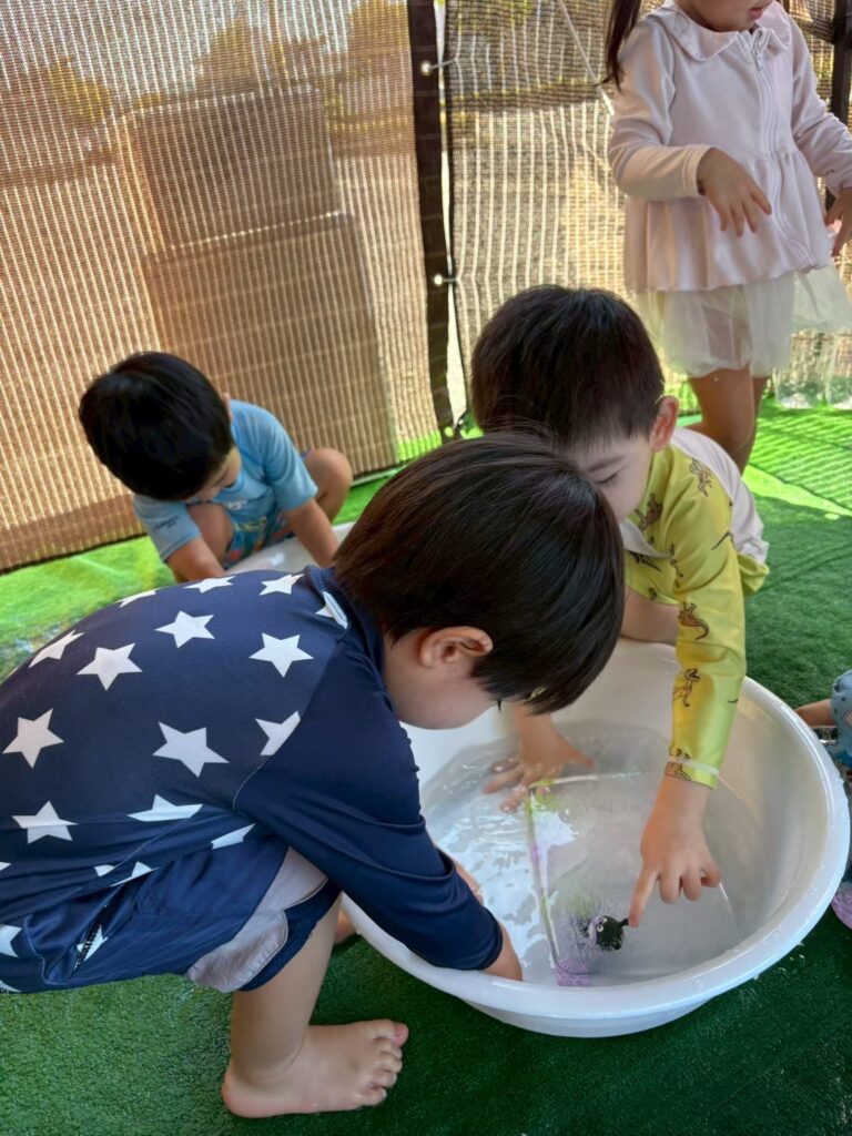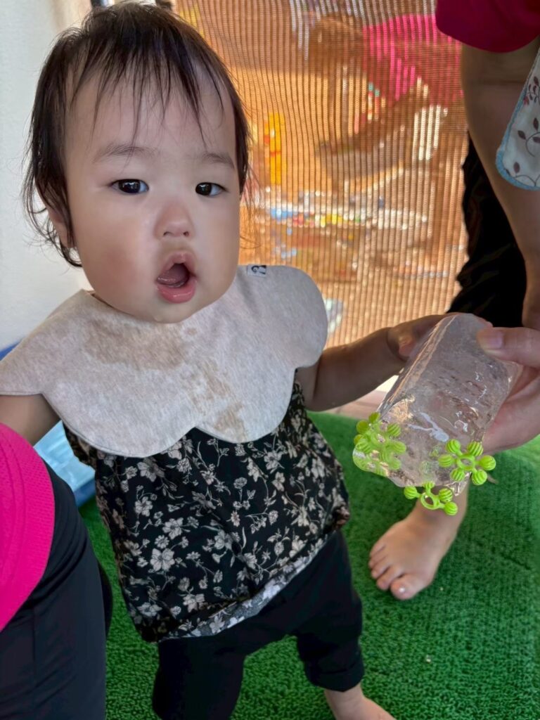 氷とお湯を交互に触って温度差を確かめていた子どもたちでしたよ♪