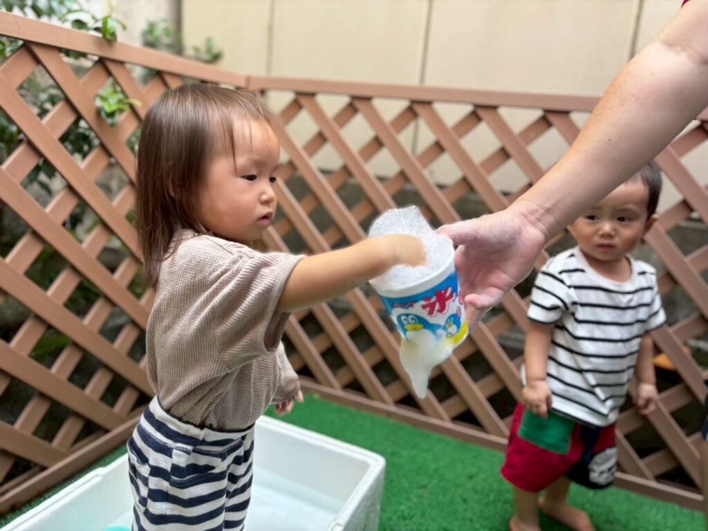 今回は【つめたい・あったかいを感じよう】というテーマで、お湯や氷を触っていきます♪