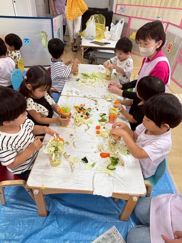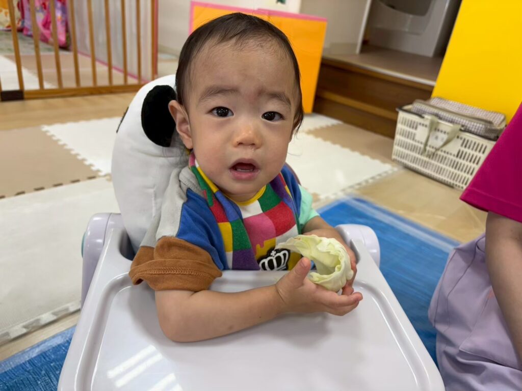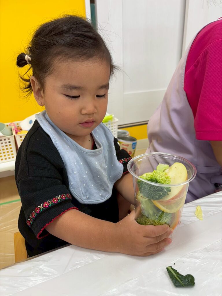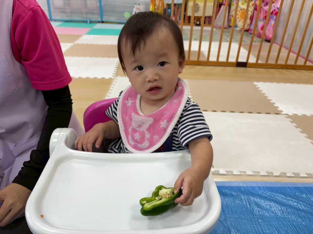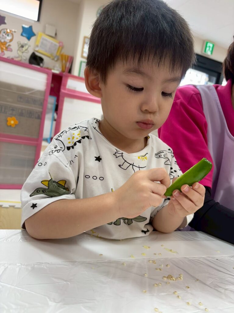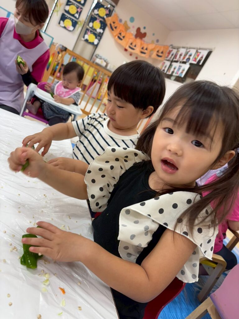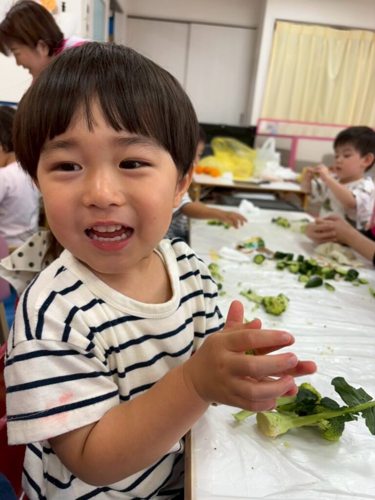 また、給食の時間には「これにんじんだ!」などと、実際に触れた野菜の名前を教えてくれる姿も見られましたよ♪